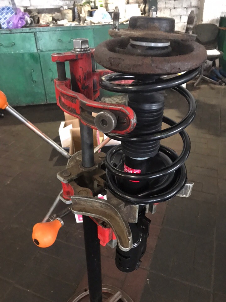 Mitsubishi Lancer X. Диагностика и ремонт ходовой части. Замена передних амортизаторов + пружин. Рекомендуем использовать фирму KYB. Отличное соотношение цена+качество. Также являемся официальным представителем-установочным центром. Также попутно были заменены правая опора ДВС и ремень вспомогательных агрегатов. |
