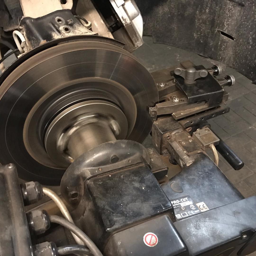 Сегодня в наш автосервис обратился владелец Infiniti FX37. Жалоба - вибрация при торможении. Тормозная система данного кроссовера не рассчитана на мощность двигателя. Поэтому у активных водителей тормозные диски часто перегреваются и изменяют свою геометрию. В ходе диагностики было обнаражен небольшой износ и искривление поверхности. Поэтому было предложено сделать проточку тормозных дисков. Работа выполняется без снятия тормозных дисков с автомобиля. Результат-отсутсвие вибрации при торможении. |