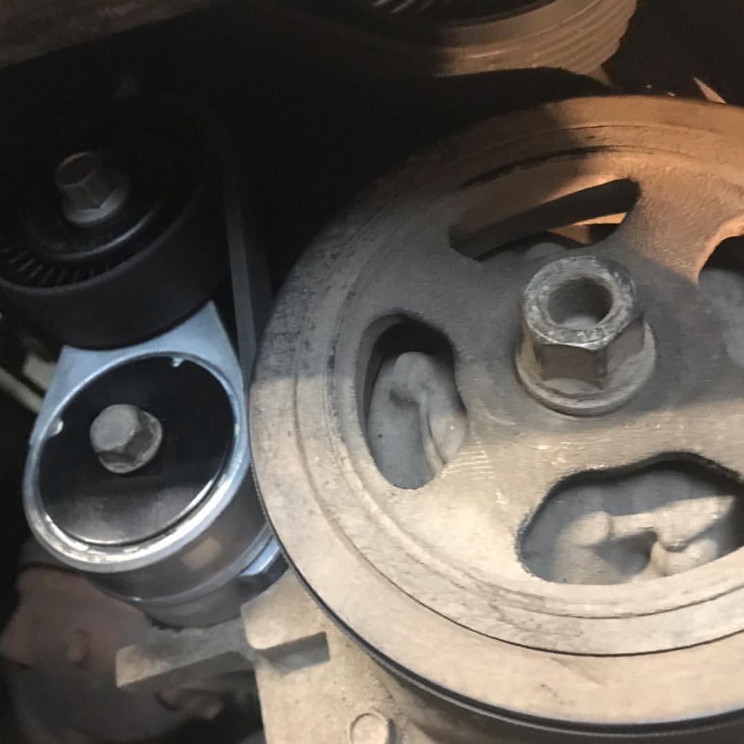 Сегодня в наш автосервис притащили Hyundai Solaris. Лопнул ремень вспомогательных агрегатов. Причина -натяжитель ремня. При данной неисправности эксплуатация автомобиля невозможна, так как от ремня приводится в действие помпа, насос гидроусилитель, генератор, кондиционер. Ремень, натяжитель и ролик были установлены новые. Автомобиль снова на ходу. Меняйте во время неисправные элементы и автомобиль не подведёт Вас в самый неподходящий момент |
